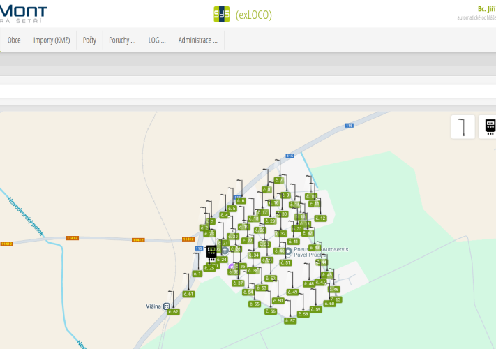 zobrazovat mapu s objekty vybrané obce